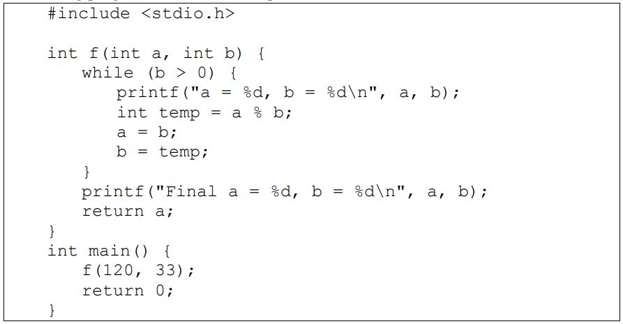 1. Given the following program, what are the outputs after code execution?
