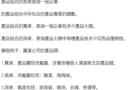 產品組合長度:公司所能生產或銷售的產品項目的總數