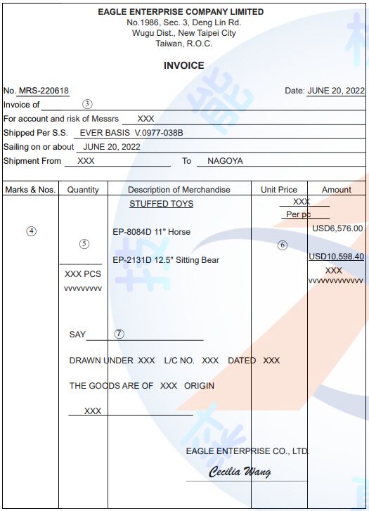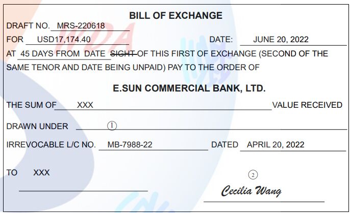 請依所附信用狀部分內容及相關工廠出貨明細資料,填製(一) Bill of Exchange、(二) Invoice、(三) Packing List、(四) Shipping Order 等單據所要 求之內容,並請依照題號、、…依序將正確答案填入答案紙之答案欄內。