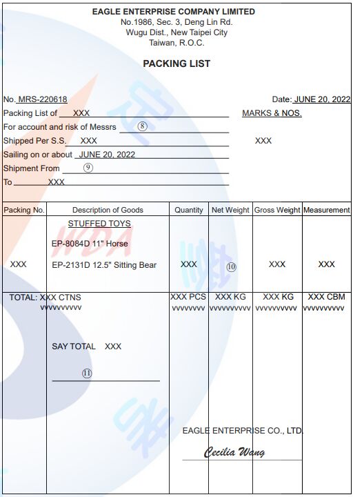 1. COMMERCIAL INVOICE AND PACKING LIST MUST SHOW S/C NO. EE-220315