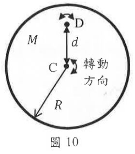 ,而在距離圓心d之D點為轉軸的轉動慣量為