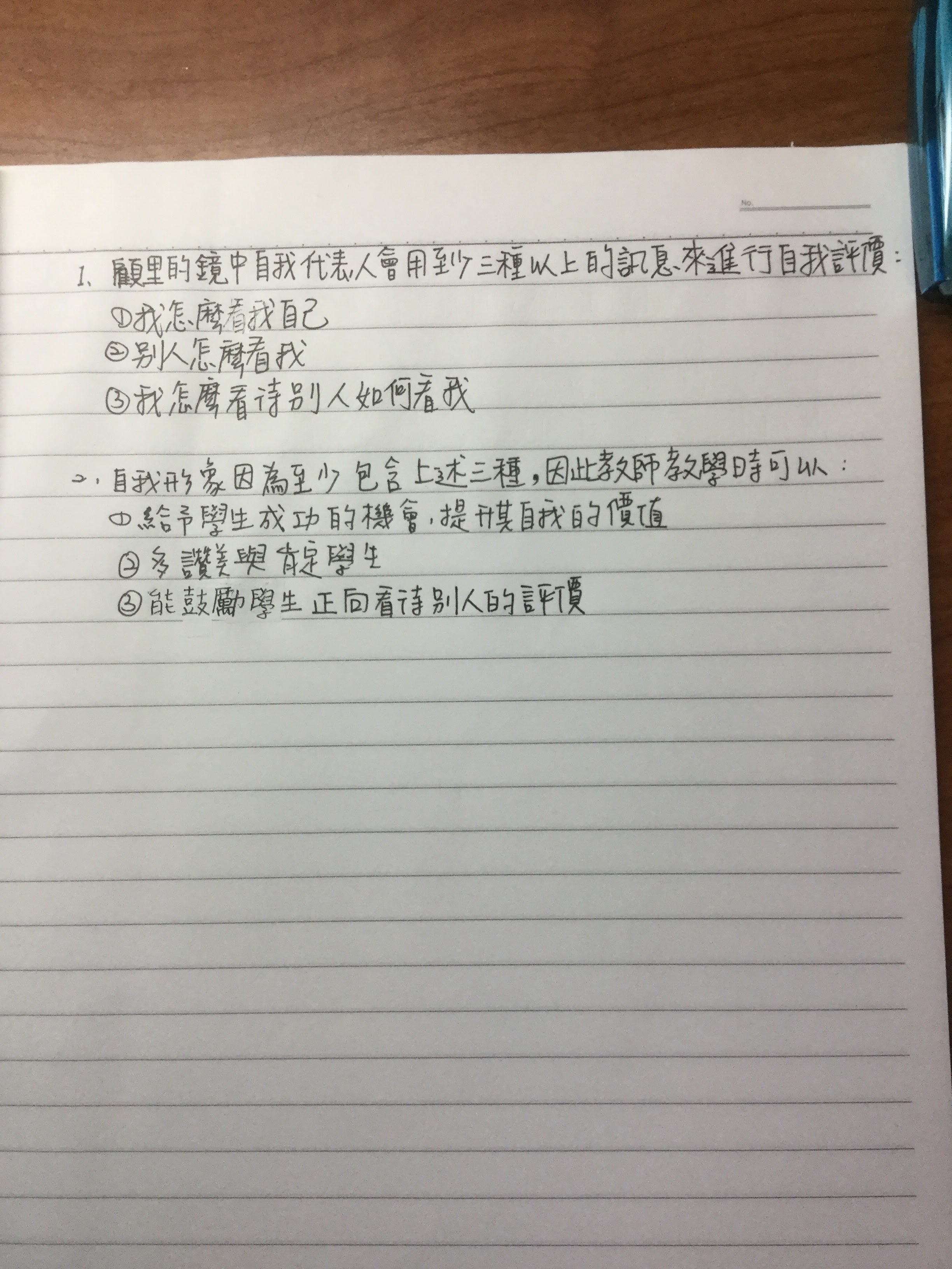 2.透過了解後,教師可加以鼓勵及發掘學生該方面的成長與進步,將有助於學生建立正向自我概念。