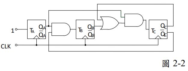 9.如圖2-9電路圖中,若D2D1D0的初始狀態為111,且CLK適當觸發,電路經過8個時脈週期後,D2D1D0會呈現甚麼狀態?_________