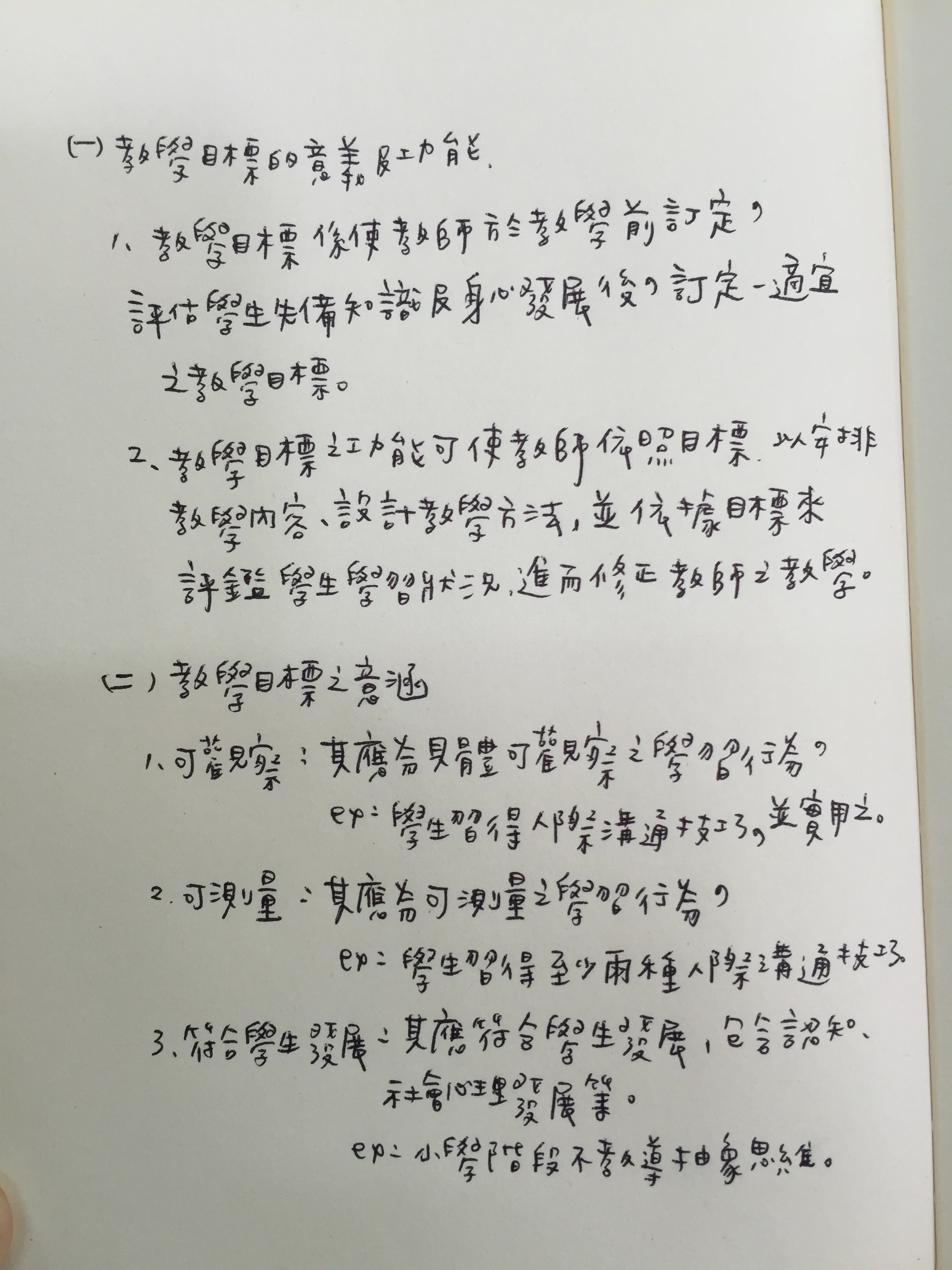 1.針對內容訂出學生應該學到的認知、情意及技能。