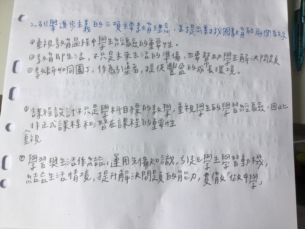 3.教育即生活:教育並非生活預備說,而是教育本身就是生活,從生活中找尋問題並解決。