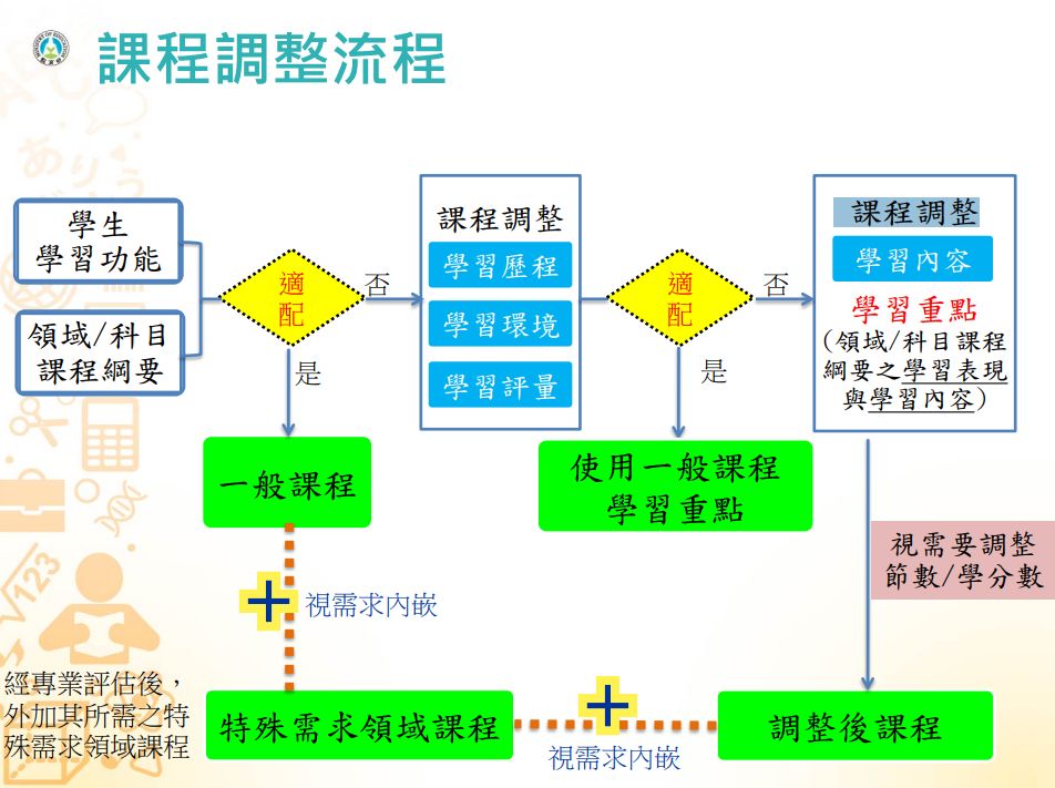 2.「十二年國民基本教育課程綱要特殊教育課程實施規範」裡提到,針對身心障礙 學生課程調整實施的步驟順序原則為何?