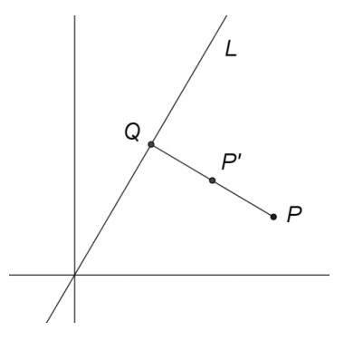 ,二階方陣 A 所對應的線性 變換 P' =AP ,是將點 P到 L 的垂直距離縮小一半得到 P' 點,如圖所 示,Q 是 P 在 L 上的投影點, P' 就是