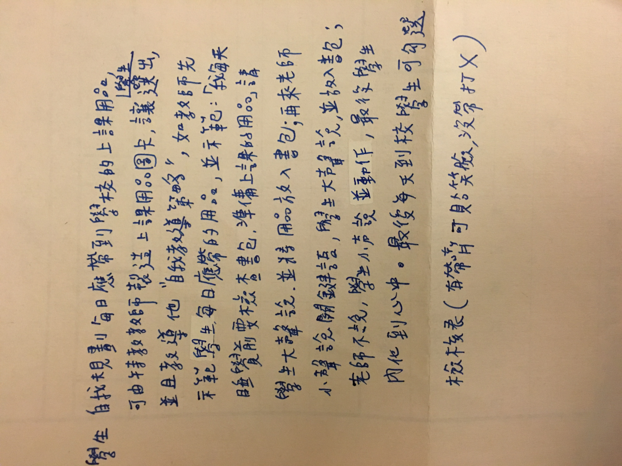 1.認知示範:由教師先大聲示範自我教導方式>看到圖片,大聲說出我要帶齊上課用品,並確實拿出上課用品放入書包。