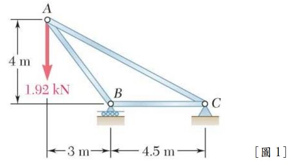 4. 求各桿件所承受的力量,並註明是承受張力或承受壓力。(7 分)