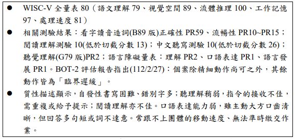 2. 二、(20%)阿美為本校專業技能班高一的學生,因重新鑑定所需,目前已蒐集的相關測驗及醫療資料如下: