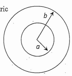 2. A long coaxial cable (as shown in Fig.) consists of two thin walled concentric conducting cylinders with radii a and b. The inner cylinder carries a steady current i, and the outer cylinder provides the return path for that current. The current sets up a magnetic field between the two cylinders. Calculate the energy stored in the magnetic field for a length l of the cable.