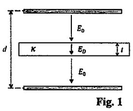 2. The plates of a parallel-plate capacity carry surface charge density σ C/m². A dielectric slab of thickness t and dielectric Constant κ is inserted into the parallel plate capacitor with plates of area A, separated by distance d, as shown in Fig.1. Assume that the battery is disconnected before the slab is inserted.