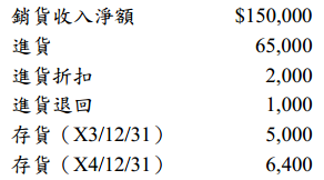 一、下列為甲公司 X4年損益表上部分會計科目金額,甲公司採定期盤存制,