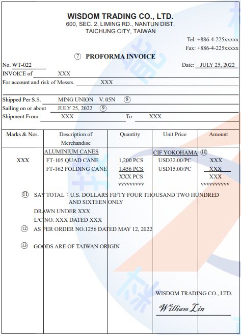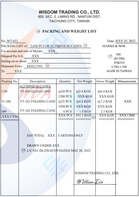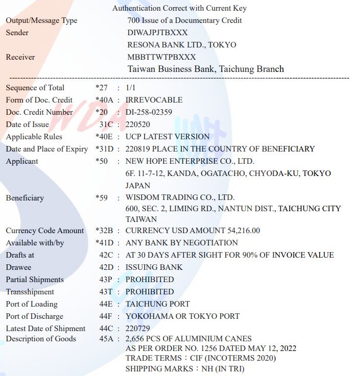 二、貿易單據審改(本題共 10 小題,每小題 3 分,合計 30 分) 請根據下列信用狀內容,審核所附押匯單證編號①②③…內容,並將錯誤之 編號及正確答案寫在答案紙。(每題錯誤編號 1 分及正確答案 2 分)