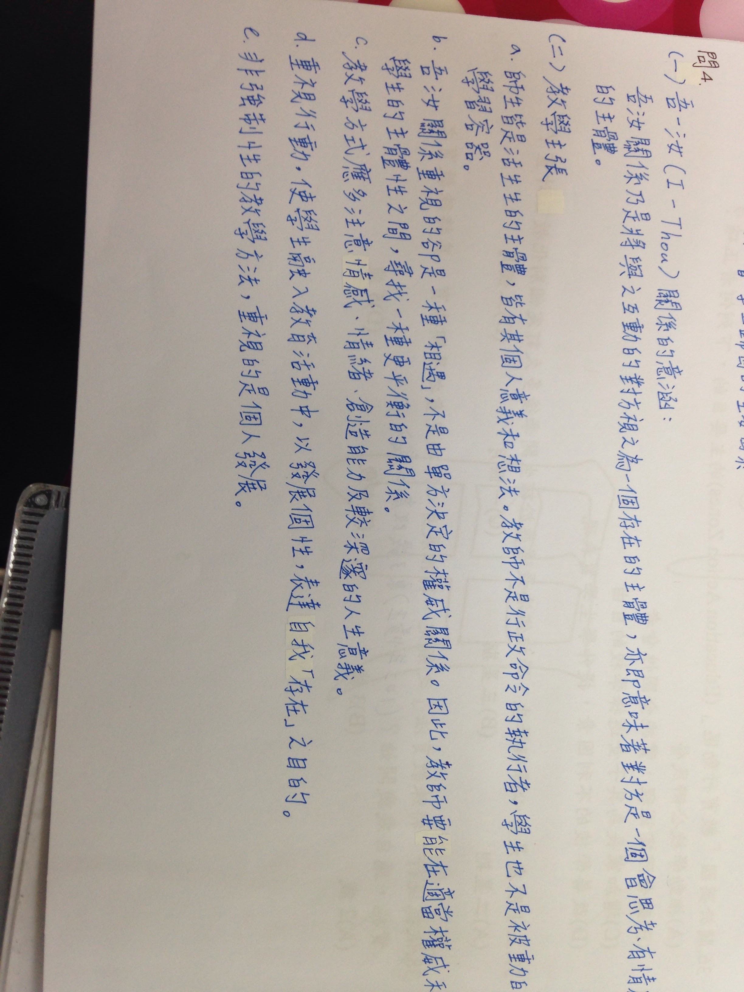 (四)師生為友伴關係:師生地位轉變成平行的、對等的方式,可以像朋友般溝通、討論學問與知識,在學生學習過程,教師也會有教學相長之穫。
