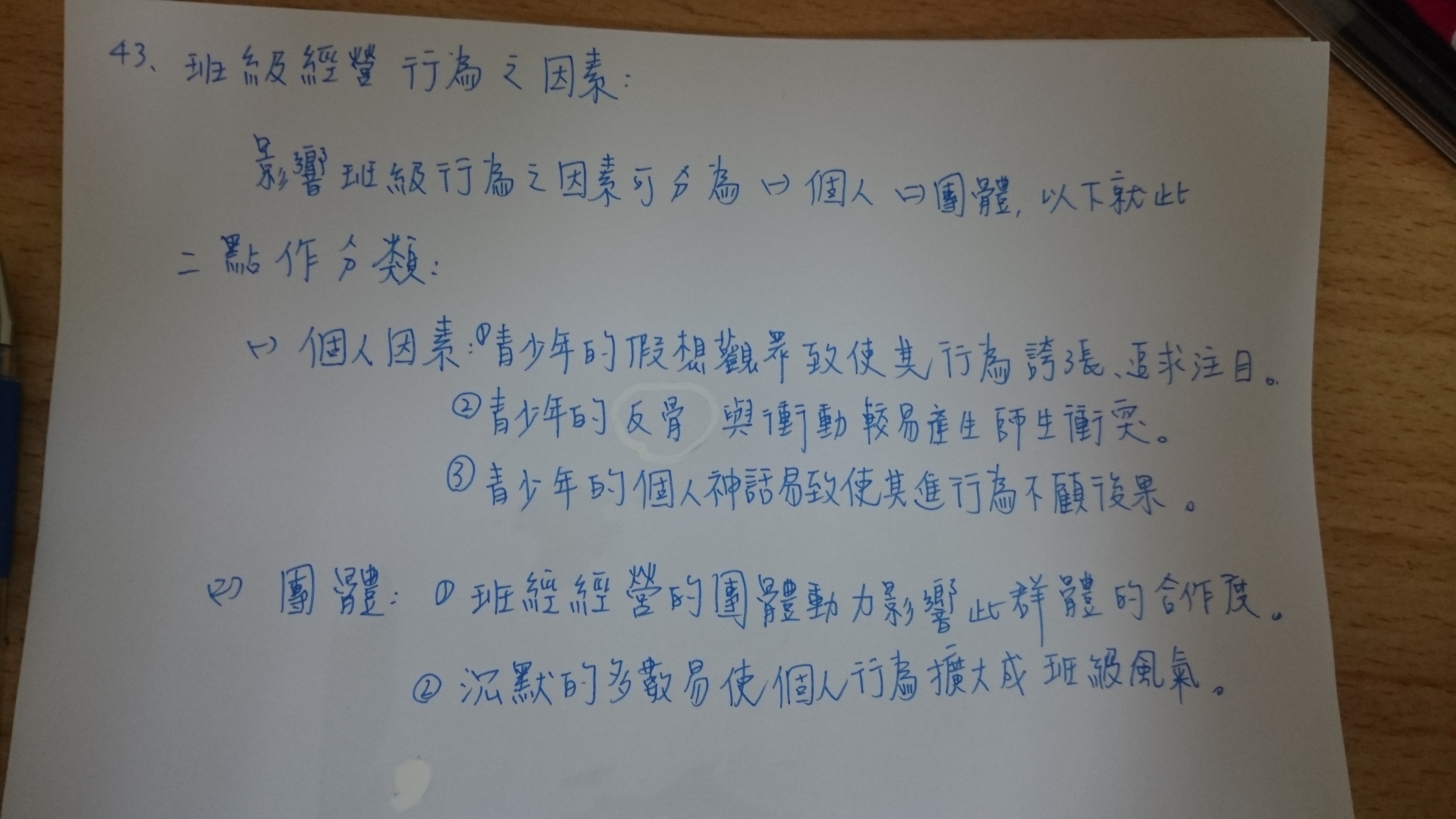 一、教師因素:教師個人特質、教學模式以及跟學生的互動模式,皆會影響班級氣氛與班級行為。
