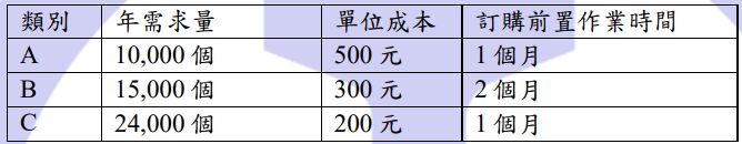 每次訂購成本:2000 元/次,年持有成本為單位成本 20%,安全庫存為月需求量 50% 請分別計算以下: