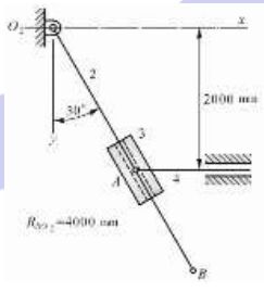 第三題 有一機構如下圖所示位置時滑桿 4 向左等速移動速度為
