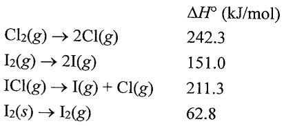 3. Using the following data, calculate the standard heat of formation of the compound ICl in kJ/mol: