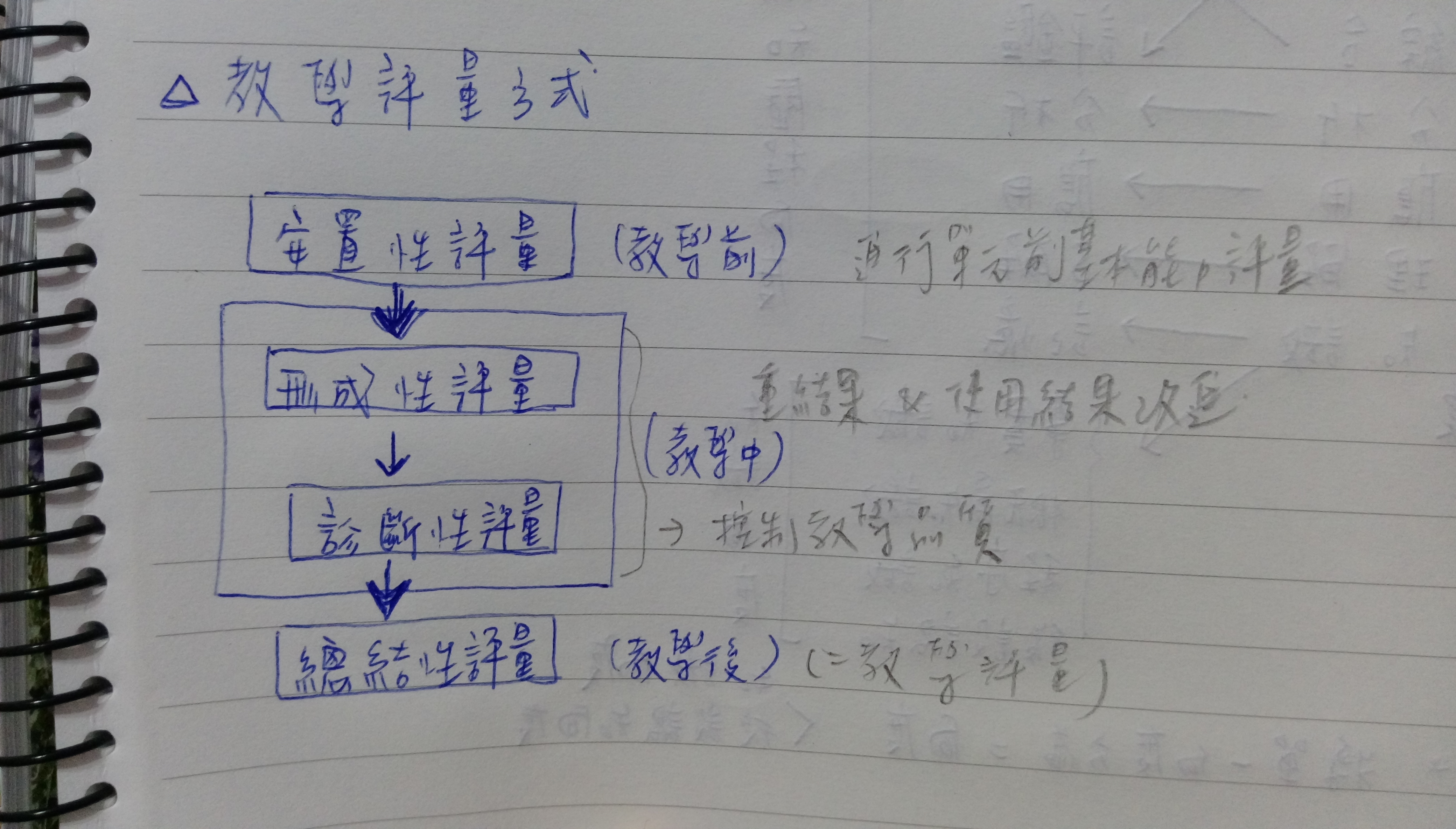 (3) 形成性評量:教學過程中實施,可檢視學生一個階段的學習以及老師的教學,視需要再改進與調整