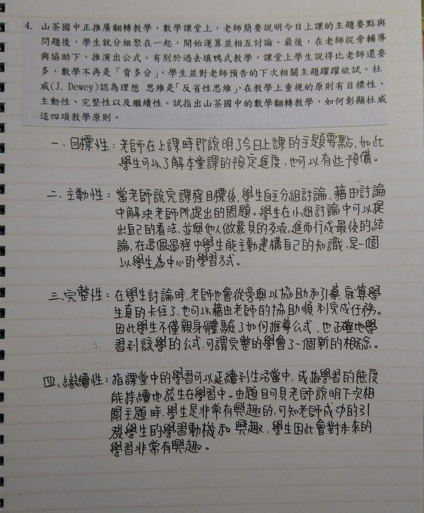透過上述將翻轉教育與杜威教學四大原則相互比較與呼應,能更加清楚了解兩者之相關性。