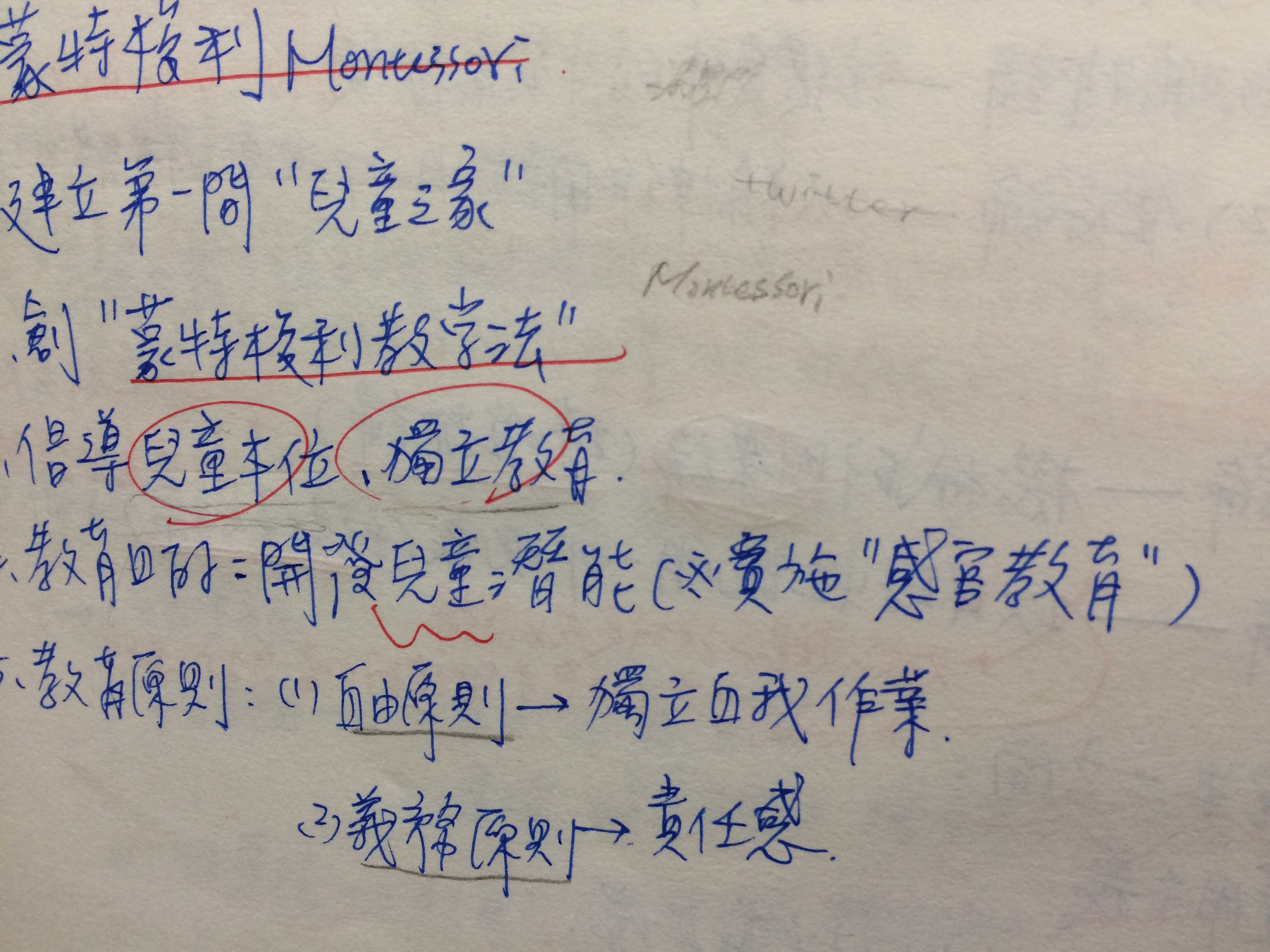 (3) 精神勝於方法:蒙氏希望她的學生不要「主動」的想去「教」孩子,應該做個「旁觀者」來注視孩子的一切行為