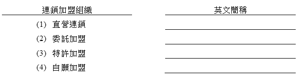 4. 請寫出以下連鎖加盟組織的英文簡稱。(每格1分)