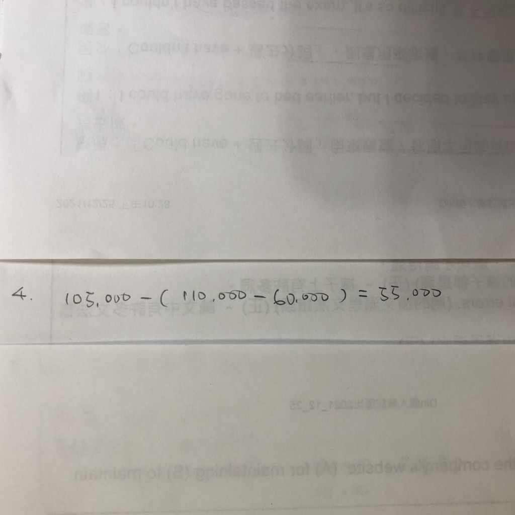 =105000-(公允價110000-負債60000)=55000
