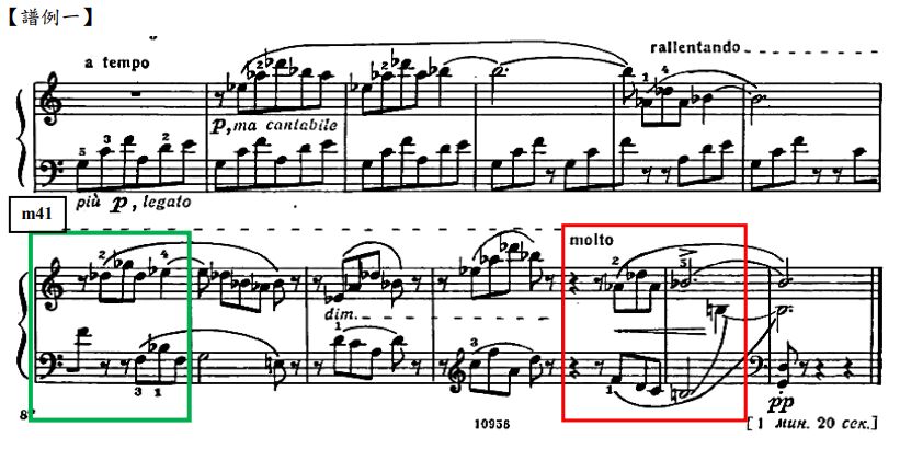 4. 請按順序寫出【譜例一】第 45-46 小節框處音程,全對才給分。