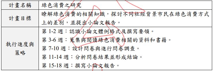 閱讀下文後,回答4-5題陳老師為青青高中自主學習的指導老師,下表是某位學生的自主學習計畫重點: