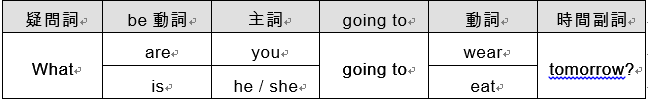Ex: 請依據範例,利用提示字造疑問句: 範例:Paul / eat / tonight What is Paul going to eat tonight?