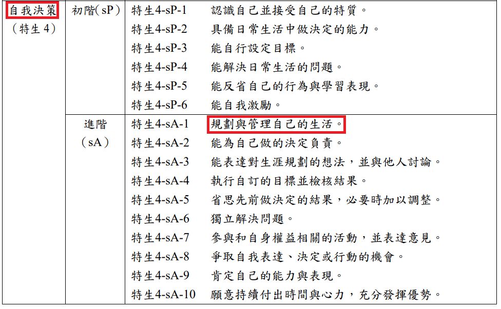 出處:身心障礙相關之特殊需求領域課程綱要