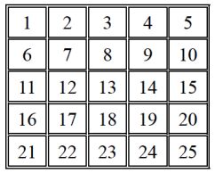 箱子中有編號 1~25 號的球各 1 顆,假設每顆球被抽到的機會相等,每局遊戲皆由箱中任抽兩球,若兩球的號碼在 看板上同行或同列,則可以得到球號相對應的獎金!舉例來說,假設抽到 2 號與 17 號便可得 2 +17=19元;倘若抽 2 號與 6 號就沒有獎金可以拿。今小馬壢參加此遊戲且只玩一次,則小馬壢所得獎金的期望值為________ 。