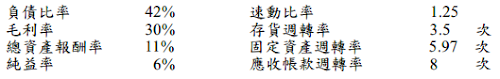 一、永康公司92 年年初資產總額為$1,100,000(內含應收帳款$200,000、存貨$300,000 及 固定資產淨額$320,000 等項),年末資產總額為$1,300,000(內含短期投資$50,000)。 92 年底該公司長期負債僅有 91 年中所簽發之應付票據一項,該票據之利率10%,將 於 94 年到期。92 年度該公司稅後純益為$120,000,所得稅稅率為 40%,假設永康公 司除長期應付票據以外無須負擔利息費用。根據 91 及 92 年度財務報表資料所計算 得到之部分財務比率如下: