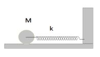 一質量為 M、半徑為 R 的圓柱體,相對於圓柱中心為轉軸的轉動慣量 ,以一條質量可不計且力常數為 3.00 N/m 的輕彈簧連結圓柱中 心至一固定牆面,如圖所示。