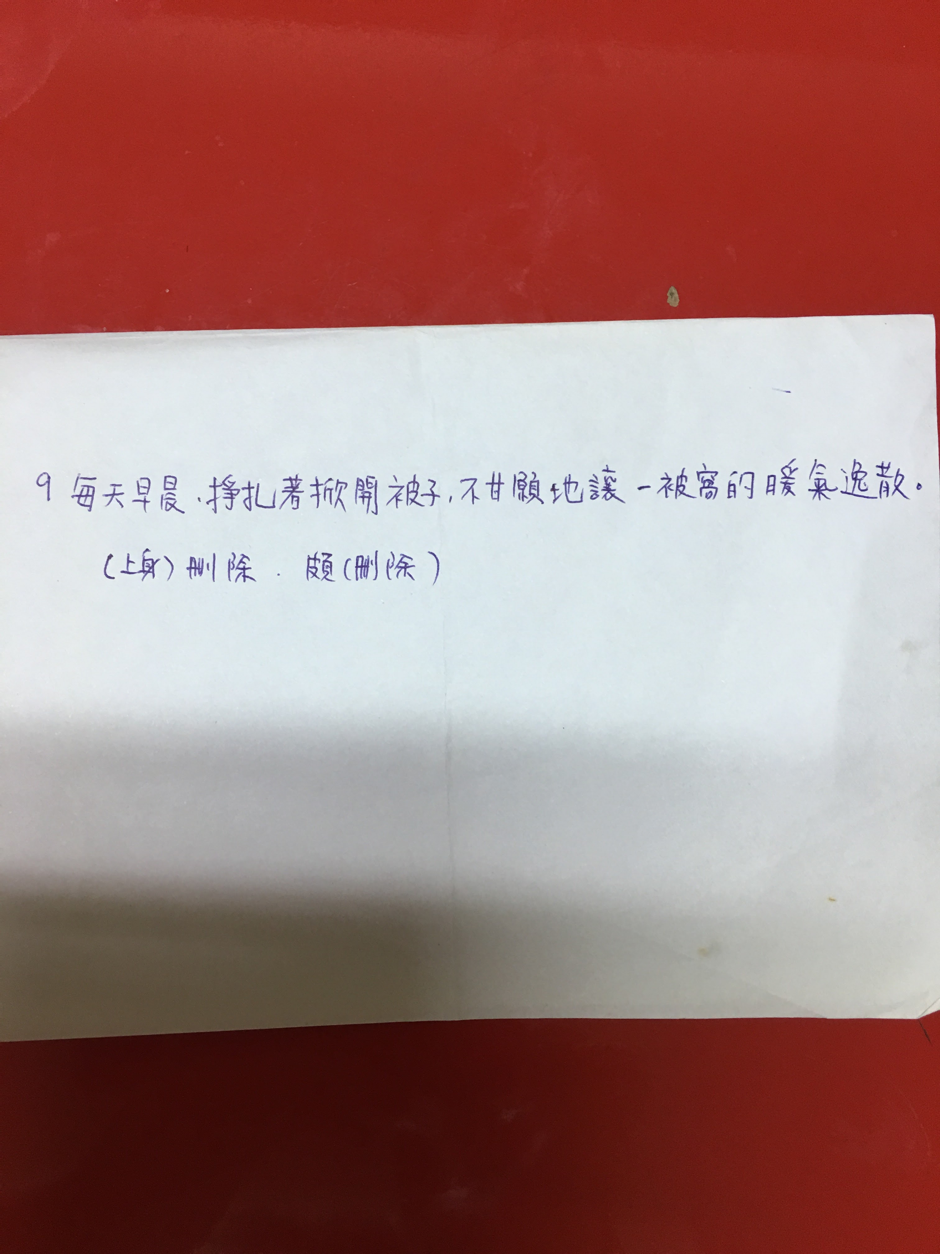9.每天早晨,掙扎著掀開被子上身,頗不甘願地讓一被窩的暖氣逸散。