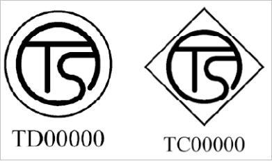 TD安全標示(安全標辦3,職安7型式檢定,圓形)、TC合格標章(安全標辦4,職安8型式驗證,下尖四角形)
