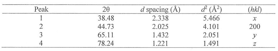 a) Please determine whether the unknown crystalline sample is simple cubic, face-centered cubic (fcc), or body-centered cubic (bcc). Explain your reasons.